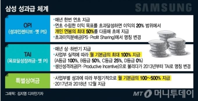 삼성전자의 성과급 제도는 인재를 강조한 고 이건희 삼성전자 회장의 성과보상 철학에 따라 2001년 'PS'(Profit Sharing·초과이익 분배금)라는 이름으로 도입됐다. 인사와 승진만이 아니라 평소 급여에도 '성과가 있는 곳에 보상이 있다'는 원칙이 체계화된 사례다. 2014년 개인의 고과를 좀더 반영한 OPI로 명칭이 바뀌는 등 제도를 손봤지만 '초과 이익을 직원들에게 돌려준다'는 취지는 그대로 유지됐다.