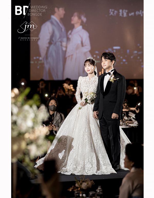 공개된 화보에는 가족과 친·인척, 지인들의 축복을 받으며 행복한 결혼식을 올리는 초아 부부의 모습이 담겼다. 초아는 단아하면서도 수줍은 신부로 눈부신 웨딩드레스 자태를 뽐내 시선을 강탈했다.