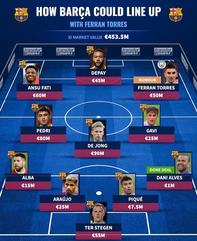 축구통계매체 '트랜스퍼마크트'는 토레스, 알베스가 합류할 경우의 바르셀로나 예상 베스트 일레븐을 공개했다. 선발 기준은 해당 매체가 매긴 가치였다. 공격진은 안수 파티, 멤피스 데파이, 토레스가 구성했다. 중원은 페드리, 프랭키 더 용, 파블로 가비가 구축했다. 수비진엔 조르디 알바, 로날드 아라우호, 헤라르드 피케, 알베스가 이름을 올렸고 골키퍼 장갑은 마르크 테어 슈테겐이 꼈다.