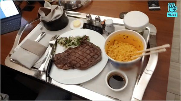 실제로 방탄소년단은 라이브 방송에서 팬들과 소통하며 자주 비빔면 먹방을 선보였고, 특히 스테이크와 비빔면을 함께 곁들여 먹는 멤버들의 모습 덕분에 스테이크와 비빔면을 함께 먹는 '방탄소년단 정식'이 전 세계 팬들 사이에서 유행한 바 있습니다.
