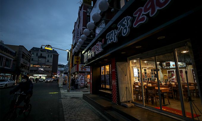 자영업 총연대, 방역강화 항의 집단 소등 27일 서울시내 한 먹자골목에서 코로나 피해 자영업 총연합 회원 식당이 정부의 방역지침에 항의하며 간판을 소등한 채 영업하고 있다. 뉴시스 |