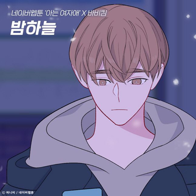 바비킴은 네이버웹툰 ‘아는 여자애’의 새로운 OST ‘밤하늘’이 9일 오후 6시 각종 온라인 음원 사이트를 통해 발매된다. ‘밤하늘’은 작품 속 주인공 하영과 재현의 엇갈리는 일상 속에서 서로를 그리워하는 마음을 담은 곡으로, 두 주인공의 애틋한 마음이 섬세하게 표현됐다.