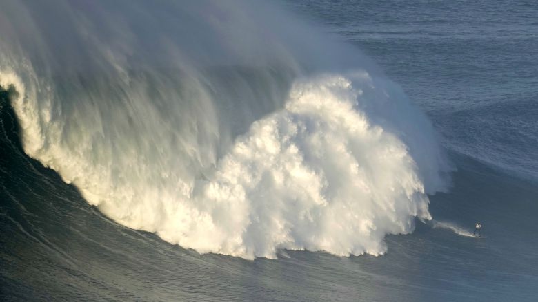 나자레 해변에서 거대 파도 서핑 세션이 열린 8일 많은 사람들이 장관을 즐겼다. AP=연합뉴스