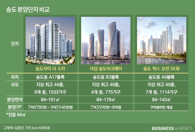 '2021년 11월 송도 자이더스타(13대1 경쟁률, 12월 35% 미계약)→올 1월 더샵 송도아크베이(47대 1 경쟁률)'
