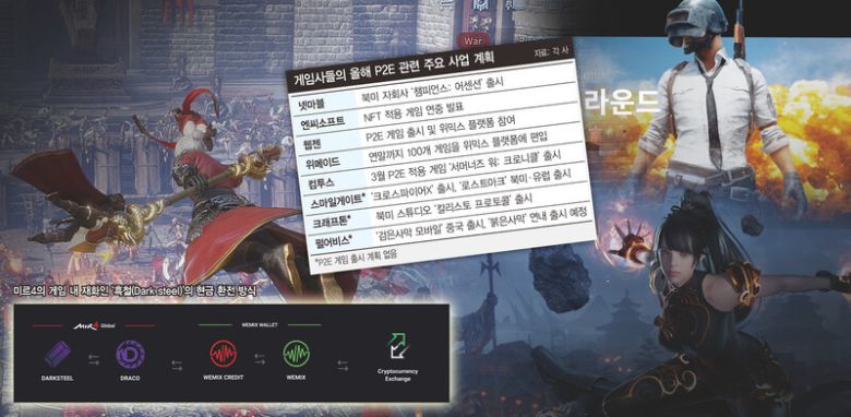 미르4 흥행은 새해 케이(K)-게임(국산 게임) 업계 전체에 피투이 개발 열풍을 몰고 왔다. 컴투스·웹젠 등 업력 20년 이상의 중견 게임업체들은 물론이고 엔씨소프트와 넷마블 같은 대기업까지도 올해 피투이 신작을 발표하겠다고 팔을 걷어붙이고 있다. 일부 회사는 게임 계정을 대체불가토큰(NFT)으로 만들어 사고팔게 하는 단계에 이르렀다.