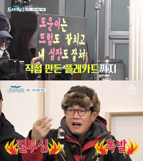 도운이 등장하자 스튜디오 곳곳에서 환호성이 들려왔다. 이어 '도시어부' 막내 작가는 "도운이는 드럼도 잘치고 내 심장도 잘쳐"라는 플랜카드를 들고 등장, "윤도운! 윤도운!"이라며 도운의 실명을 연신 외쳤다.