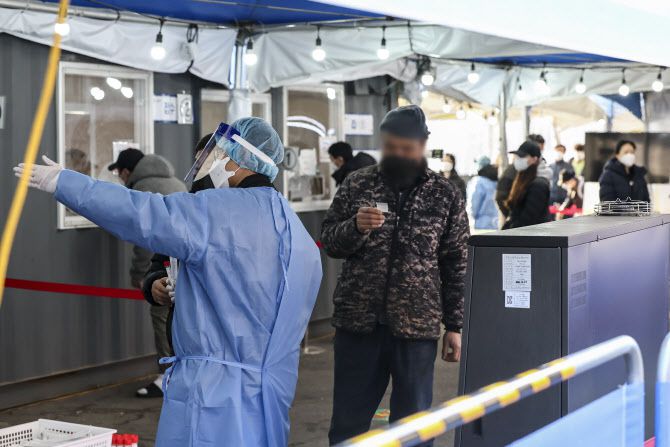 지난 16일 오전 서울역에 설치된 코로나19 임시선별검사소에서 시민들이 검사를 받기 위해 줄을 서 있다. (사진=연합뉴스)