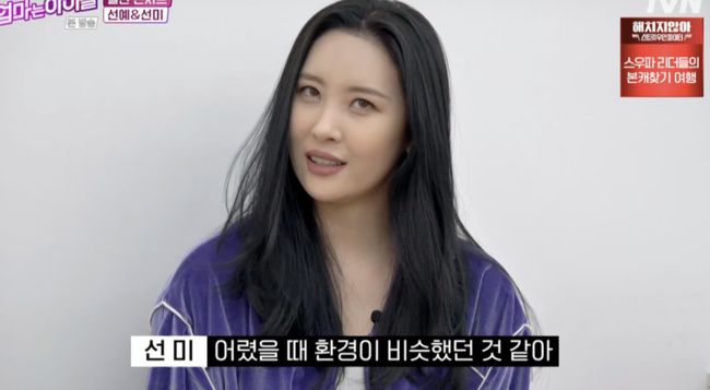 선미는 “연습생 때 난 13,14세인데 18세였던 언니가 밥을 많이 해줘, 진짜 엄마같은 사람”이라며 “혼자 월드투어로 캐나다갔을 때도 언니가 뭘 많이 싸줬다, 언니가 해준 김치볶음밥보고 눈물이 나더라, 고맙고 옛날 생각이 났다”고 했다.