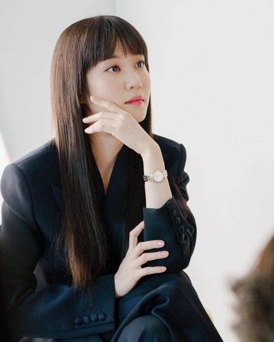 사진 속 박은빈은 수트를 입고 시크한 분위기를 자아낸다. 박은빈은 턱을 괴고 그윽한 눈빛으로 카메라를 응시하고 있다.