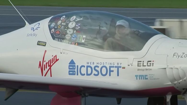 ▲자라 러더퍼드의 비행기가 공항으로 들어오는 모습