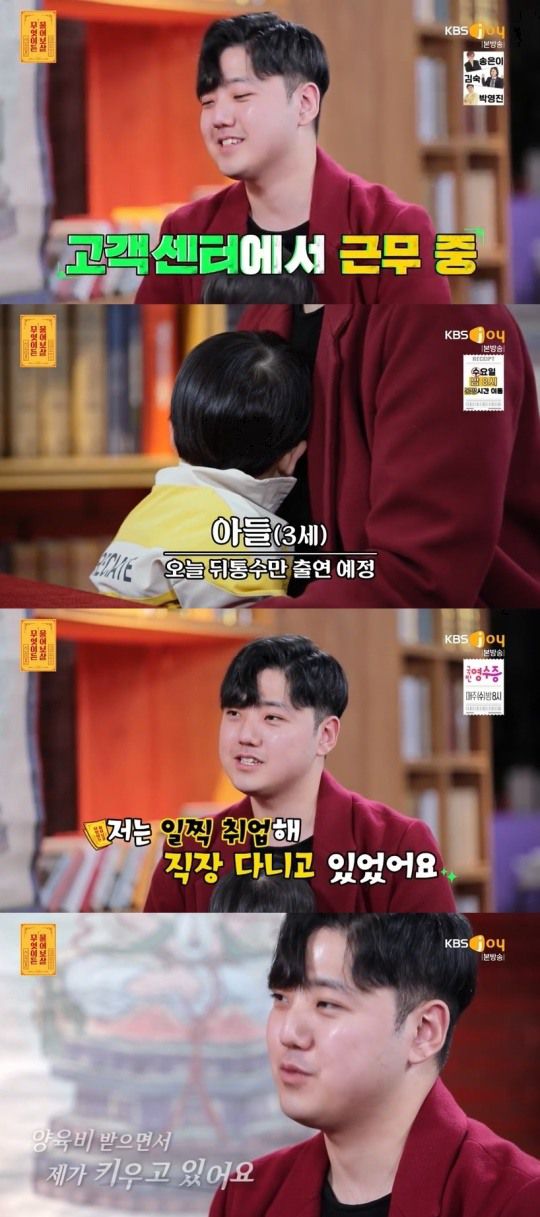 이날 방송에서 한 남성은 아이를 데리고 왔다. 24살이며 21살에 혼전임신으로 결혼했다가 현재는 이혼소송 중이라고 했다.
