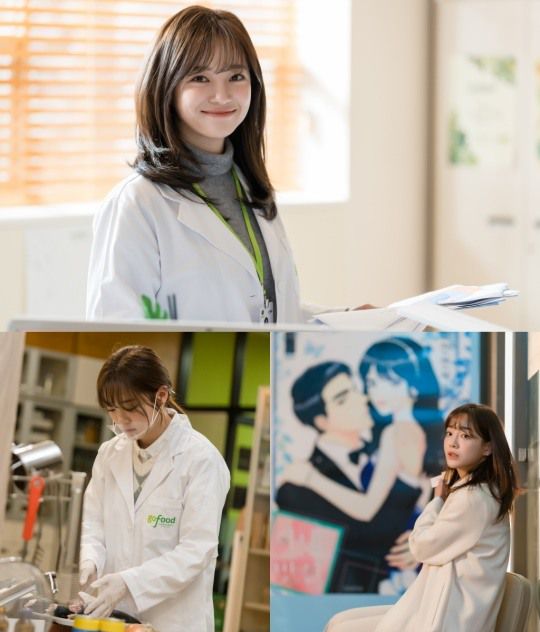 공개된 사진은 식품개발팀 연구원으로 일하는 신하리의 직장 생활을 담고 있다. 흰색 가운을 입고 사원증을 목에 건 신하리는 식품 연구에 몰두하고 있는 모습이다. 이렇게 일에 파묻힌 노곤한 일상 속에서도 신하리는 긍정 에너지를 뿜어내는 인물. 엉뚱하지만 사랑할 수밖에 없는 신하리의 매력을 김세정이 어떻게 그려낼지 기대감이 더해진다.