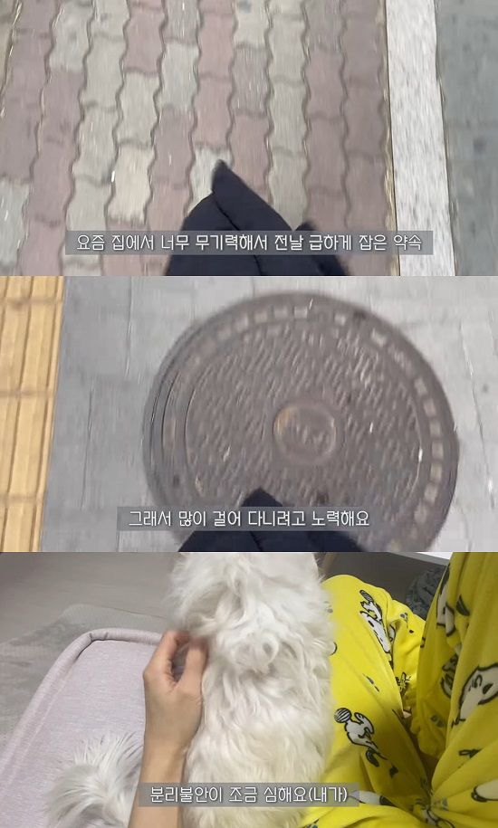 정자는 "무기력해 급하게 약속을 잡았다. 많이 걸으려고 노력한다"는 자막과 함께 무기력함을 극복하려는 모습을 담았다.