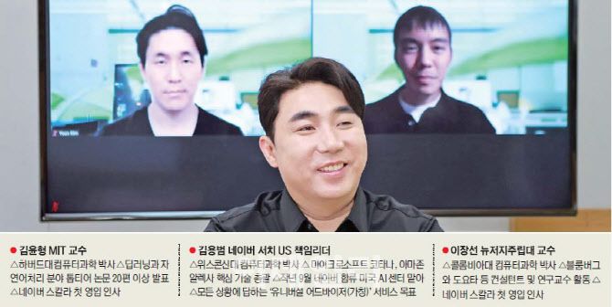 김 리더와 의기투합한 컴퓨터사이언스 교수 2명은 미국 현지에서 화상으로 이번 인터뷰에 참여했다. 김윤형(Yoon Kim) 메사추세츠공과대학교(MIT) 교수와 이장선(Karl Stratos) 뉴저지주립(Rutgers)대학교 교수다. 딥러닝과 자연어처리 분야 최고 수준의 전문가로 네이버 글로벌 인재 프로그램 ‘네이버 스칼라’의 첫 영입 인사다.