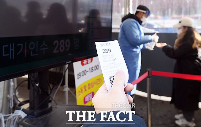이날 검사소 입구에 들어선 검사자가 오전 11시 기준 289번째 번호표를 뽑았다.