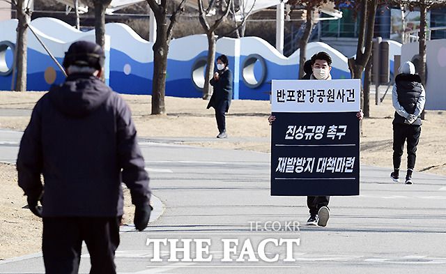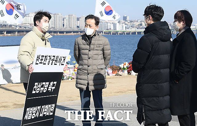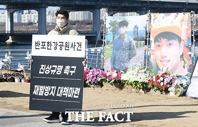 [더팩트ㅣ이새롬 기자] 서울 서초갑 국회의원 보궐선거 출마를 선언한 송자호 피카프로젝트 공동대표가 29일 오후 서울 반포 한강공원에서 지난해 4월 25일 서울 반포한강공원에서 실동됐다가 5일 뒤 숨진 채 발견된 대학생 고 손정민 군 사건 이른바 '한강대학생 사망 사건'의 진상규명 촉구 및 재발방지 마련 캠페인을 벌이고 있다.