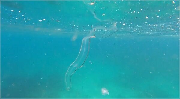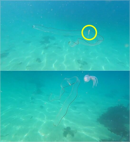 당시 에이미 씨가 비닐봉지 혹은 플라스틱이라고 생각해 가까이 다가가자 해당 생물은 투명한 몸을 흔들며 바닷속을 헤엄치기 시작했습니다.