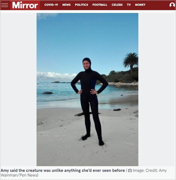 현지 시간으로 22일 영국 미러 등 외신들은 케이프타운에 사는 에이미 웨인먼 씨가 발견한 바다 생물에 대해 보도했습니다.