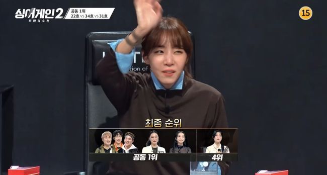 이선희는 31호에게 "왜 보컬 트레이너만 했었는지, 무대 서는 것만으로도 존재감이 있는데 31호가 그런 사람" "이런 걸 원했다. 음악 시작해서 벌스에서 다 끝났다고 생각했다"라면서 31호를 추켜세웠다. 31호는 이선의를 바라보며 "돈을 벌려고, 생계를 위해서 했던 건데 제가 동경했던 분이 이런 큰 지지를 해주셔서 정말 감사합니다."라고 말했다. 31호가 눈물을 흘리며 고하는 그 말에, 이선희는 눈물을 흘렸다./osen_jin0310@osen.co.kr