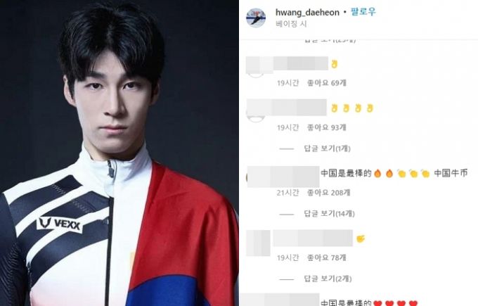 최근 황대헌의 SNS 댓글 창에는 엄지손과 검지손을 맞대고 있는 이모티콘 수백개가 달렸다. 해당 이모티콘은 한국 남성의 성기 크기를 비하하는 의미다.