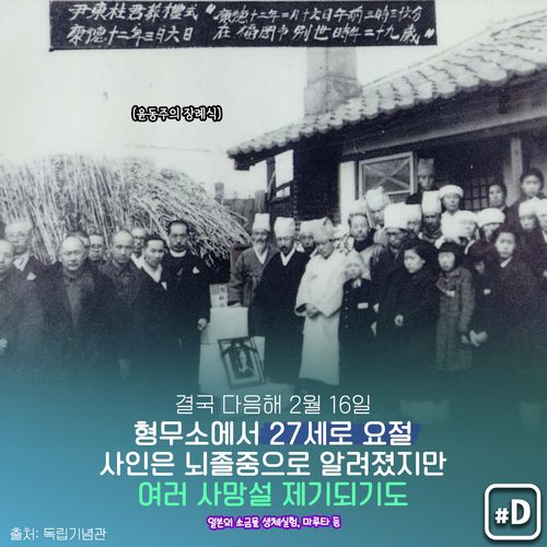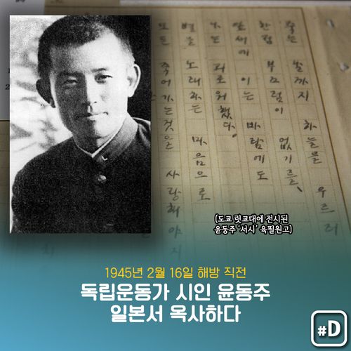 1941년 '서시'(序詩)를 쓴 시인이자 독립운동가 윤동주(尹東柱)가 해방 직전인 1945년 2월 16일 일본에서 옥사했습니다.