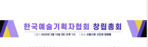 한국예술기획자협회 창립 총회가 오는 19일(토) 서울시청 시민청 태평홀에서 열린다.