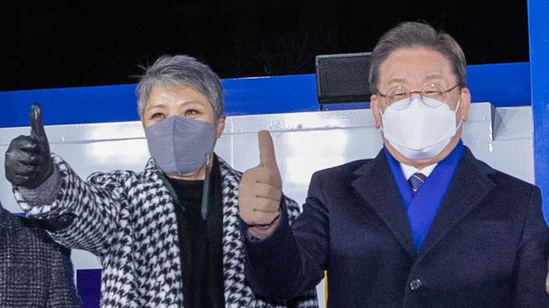 16일 잠실 새내역 유세에서 가수 이은미와 이재명 민주당 대선 후보 |