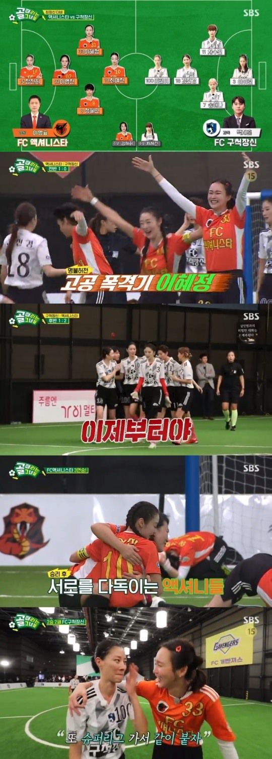 전날 23일 방송된 SBS 예능프로그램 '골 때리는 그녀들'에서는 액셔니스타가 구척장신과 경기에서 승리한 모습이 전파를 탔다.