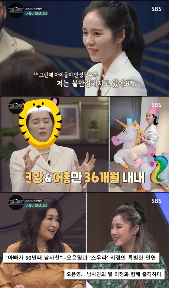 이어 "아기랑 얘기하니까 공룡 소리, 호랑이 소리 이런 것밖에 낼 수가 없다. 말을 할 데가 없다. 맨날 티라노랑 사니까. (오늘은) 말할 수 있어서 너무 좋다. 입이 닫혀지지 않는다"라고 해 웃음을 자아냈다.