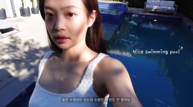 영상에서 제니는 "오늘 LA에서의 하루를 영상으로 기록해볼거다. 제가 여기서 뭐하고 지내는지 궁금했죠? 간략하게 보여드리는 저의 하루겠지만 최선을 다해보겠다. 이곳에서 머물고 있고 좋은 수영장이 있는데 수영은 한번도 안했다. 수영장이 이렇게 크면 뭐하나 싶다"고 설명했다.