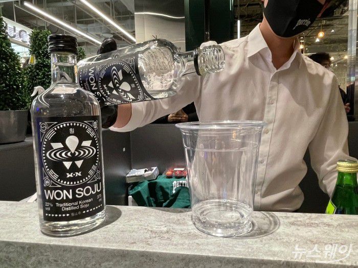 포토부스를 지나니 원소주 칵테일 존으로 이어졌다. 원소주로 제작된 칵테일인 '원밀리언'과 '원토디'를 판매하는 곳으로, 테이크아웃 컵에 담긴 칵테일을 즐길 수 있다. 이중 원밀리언은 소주를 자주 즐기지 않지만 원소주를 마셔보고 싶은 소비자들을 위해 박재범 대표가 페리에와 손잡고 만든 칵테일이다.