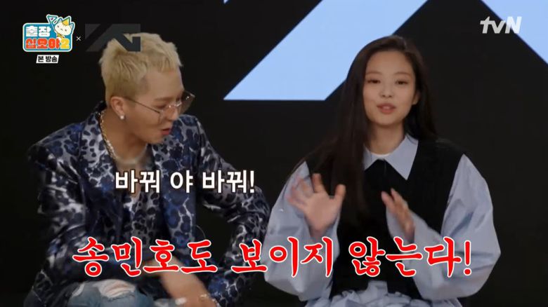 나영석이 "제니도 2010년에 입사한 거냐"라고 묻자 제니는 "그렇다"라고 대답하며 "사실 송민호나 다른 사람들은 늦게 들어왔기 때문에 김진우만 기억한다. 송민호는 보이지도 않는다"라며 장난을 쳤다.