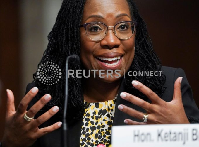 Ketanji Brown Jackson, nominated to be a U.S. Circuit Judge for the District of Columbia Circuit, testifies before a Senate Judiciary Committee hearing on pending judicial nominations on Capitol Hill in Washington, U.S., April 28, 2021. REUTERS/Kevin |