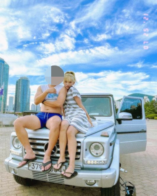 이와 함께 최준희는 1억대의 명품차 보닛 위에 남자친구와 나란히 앉아 사진을 찍고 있는 모습. 남자친구는 배를 내놓고 있고 최준희는 남자친구에 가까이 스킨십하고 있다.