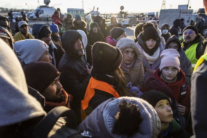 우크라이나 난민들이 28일(현지시간) 러시아의 공격을 피해 폴란드로 향하고 있다. (사진=AFP) |