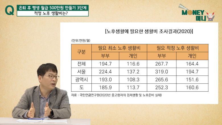 김동엽 미래에셋투자와연금센터 상무가 설명 중인 노후에 필요한 생활비. /조선일보머니 캡처 |