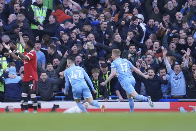 맨시티는 7일(이하 한국시각) 영국 맨체스터의 에티하드 스타디움에서 열린 2021~22시즌 프리미어리그 28라운드 맨유와의 홈경기에서 케빈 더 브라위너의 멀티골에 힘입어 4-1 완승을 거뒀다.