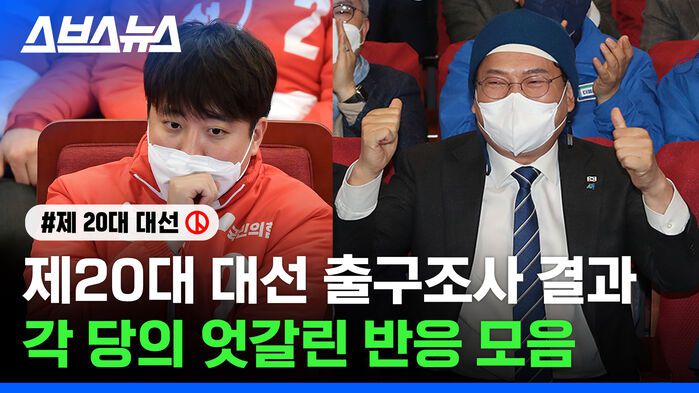 지상파방송 3사의 20대 대통령 선거 출구조사 결과, 기호 1번 민주당 이재명 후보 47.8%, 기호 2번 국민의힘 윤석열 후보는 48.4%의 득표율을 보일 것으로 예측됐습니다. 기호 3번 정의당 심상정 후보는 2.5%를 득표할 것으로 나타났습니다.