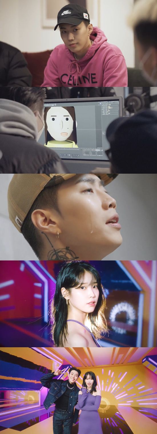 결국 마네킹, 판넬 아이유와 뮤직비디오를 촬영하던 박재범은 아이유 연락처 차단을 결심하며 눈물을 흘리기까지. 그때 등장한 아이유가 뮤직비디오 촬영장을 축제 분위기로 만드는 귀여운 내용이 담긴 스토리에, 목소리만큼이나 달콤한 두 사람의 케미는 덤이다.