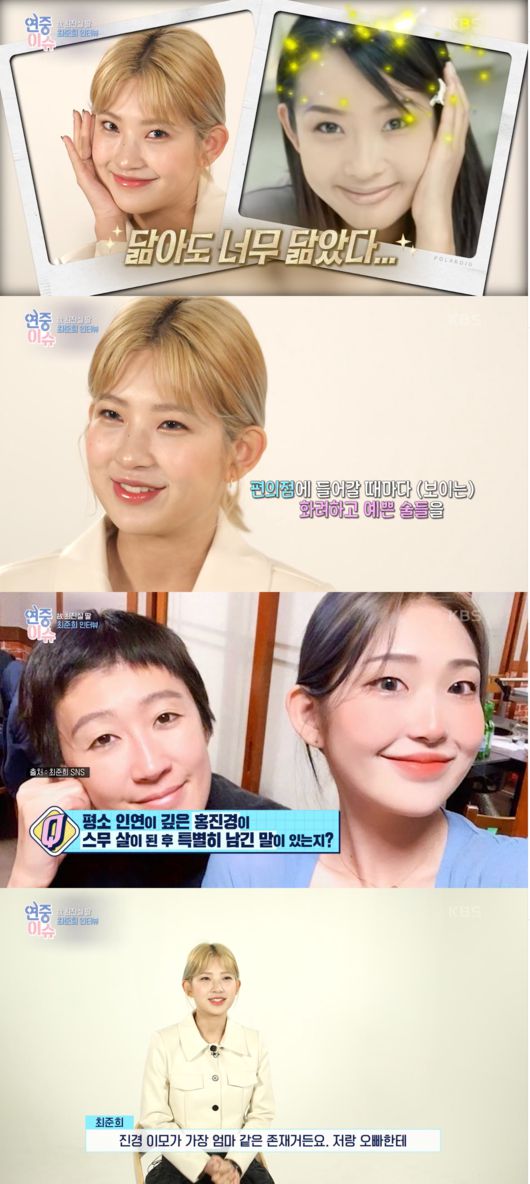 특히 최준희는 엄마 고 최진실을 닮은 외모는 물론 끼가 가득한 모습이었다. 최준희는 과거 최진실의 사진을 그대로 따라해 똑 닮은 모습을 보여 눈길을 사로 잡았다.