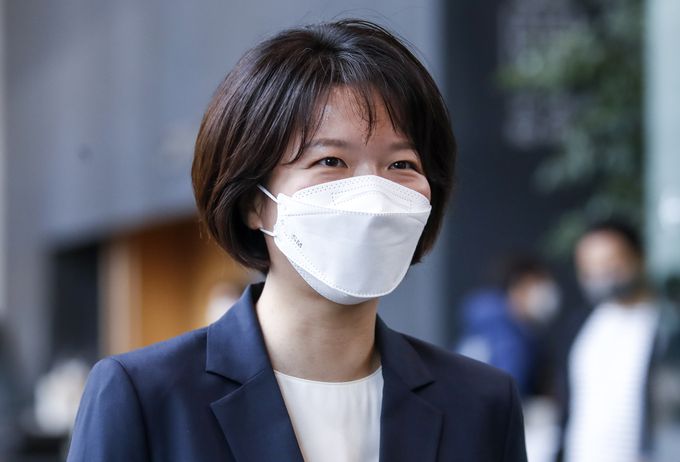 최수연 네이버 신임 대표이사가 14일 오전 경기 성남시 네이버 그린팩토리에서 열린 주주총회를 마친 뒤 취재진에게 인사하고 있다. 뉴시스 |