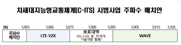 C-ITS는 와이파이 방식의 'WAVE', 이동통신 방식의 'LTE-V2X' 등 두 가지 통신기술이 있는데, 두 기술 모두에 대해 시범사업을 진행하기 위해서는 새로운 주파수 배치안이 필요했고, 과기부는 주파수 이용효율·국제동향·이용안전성·기존 이용자보호 등을 종합적으로 검토해 배치안을 확정하게 됐다고 설명했다.