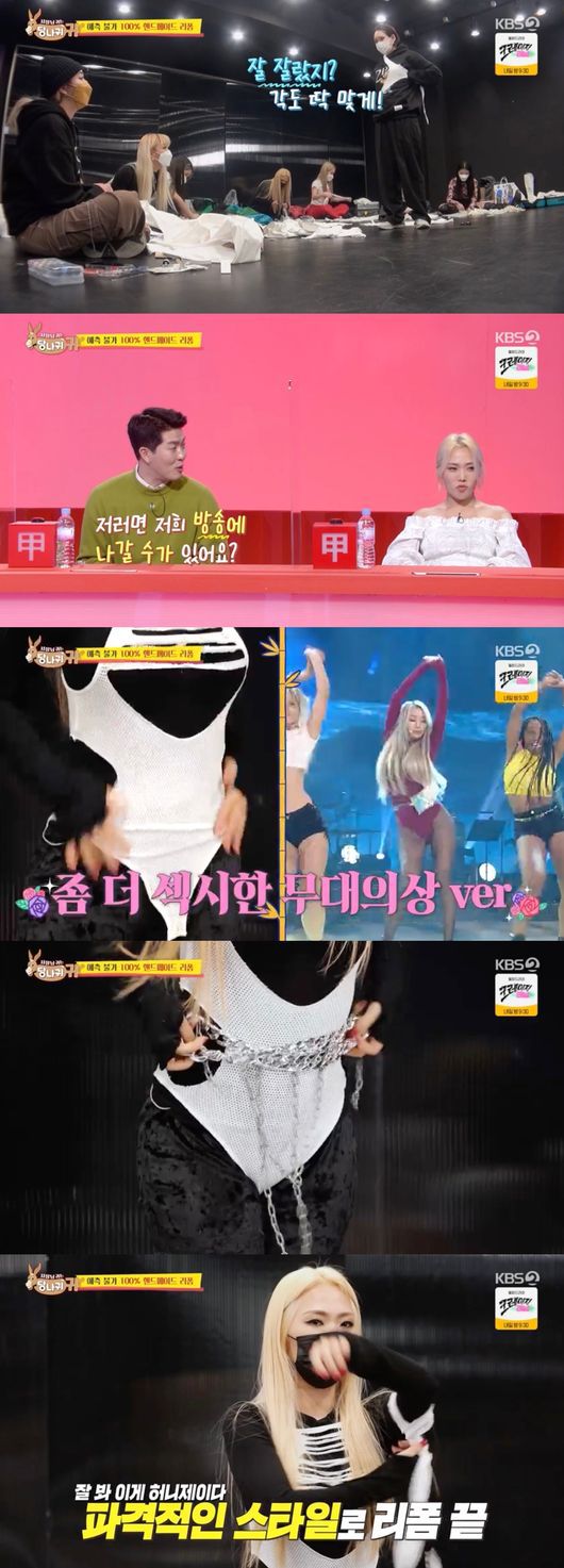결국 김병현은 "속옷만 입고 (체인을) 감을 거야"라는 허니제이의 말에 "저거만 입는다고 하니까"라며 '갑' 버튼을 눌렀고, 허재 역시 "난 뭐가 뭔지 모르겠다"며 고개를 저었다. 홀리뱅 팀원들도 "너무 아찔한데요", "어머 세상에나"라며 허니제이의 파격적인 의상을 예고했다.