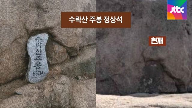 산 정상에 가면 있는 그 해발 몇 미터 무슨 봉 이렇게 적어놓은 그 돌이 사라졌다는 거잖아요?