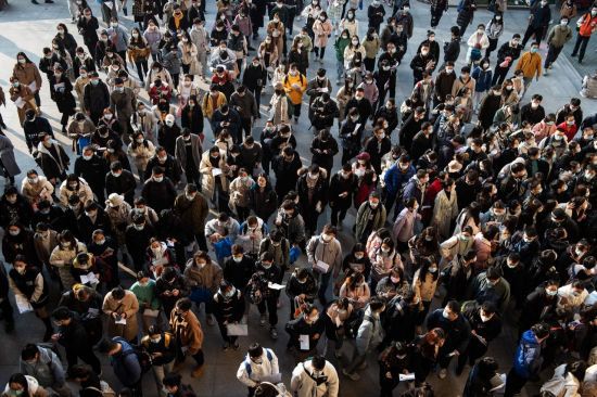 중국 허베이성 우한의 공무원 선발 시험 고사장에 응시생들이 모여 있다. [이미지출처=연합뉴스] |