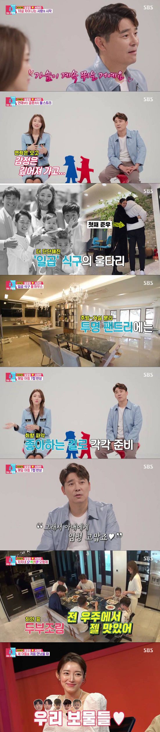 이날 방송에는 두 사람의 ‘동상이몽’ 일상은 물론 깔끔하게 정돈된 집이 최초로 공개돼 시선을 집중시켰다. 서하얀은 임창정과 다섯 아들을 위해 아침 식사를 준비했다. 서하얀은 임창정이 좋아하는 반찬들로 구성된 일명 창정이 정식‘을 뚝딱 차려냈고, 임창정과 아이들은 “전 우주에서 제일 맛있다”, “엄마가 한 건 다르다”라며 폭풍 먹방을 이어가 서하얀을 웃게 했다.