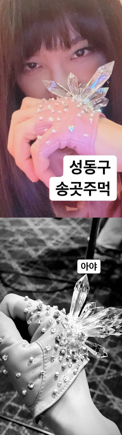 이번에 공개된 사진에는 뾰족뾰족한 장식이 붙어있는 장갑을 끼고 있는 정은지의 모습이 담겨 있다.