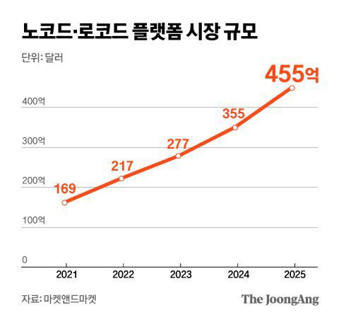노코드·로코드 플랫폼 시장 규모. 그래픽= 전유진 yuki@joongang.co.kr |