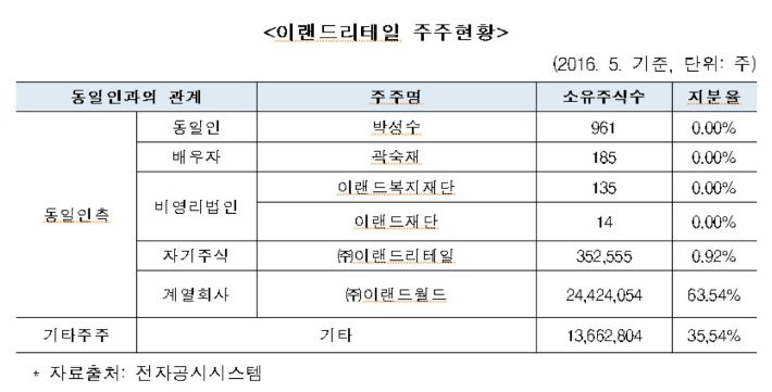 이랜드리테일의 불공정 지원으로 이랜드월드를 정점으로 하는 그룹내 총수의 지배력이 유지 강화됐다고 공정위는 판단했다.