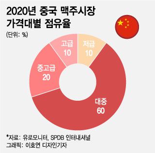 아직 중국 맥주의 고급화 정도는 낮다. 중국 증권사인 SPDB 인터내셔널에 따르면, 2020년 중국 맥주의 가격대별 판매 비중은 대중화된 맥주가 60%를 차지한 반면, 중고급 맥주는 20%, 고급(프리미엄) 맥주는 10%를 차지하는 데 그쳤다.